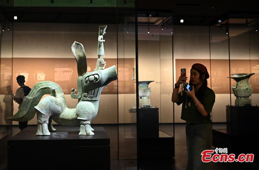 A bronze mythical beast is exhibited at the new building of the Sanxingdui Museum in Guanghan, southwest China's Sichuan Province, July 27, 2023. (Photo: China News Service/An Yuan)