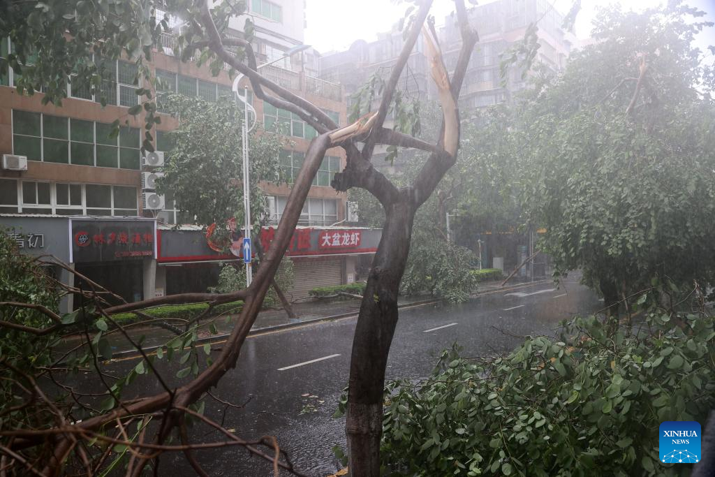 The typhoon landed in coastal areas of Jinjiang City in east China's Fujian Province at around 9:55 a.m. Friday, bringing gales of up to 50 meters per second near its center.