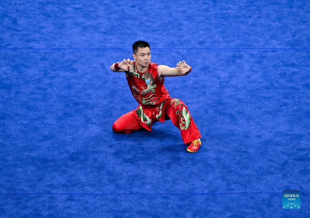 Cao Maoyuan of China competes during the Wushu Men's Nanquan at the 31st FISU Summer World University Games in Chengdu, southwest China's Sichuan Province, July 29, 2023. (Xinhua/Wang Xi)