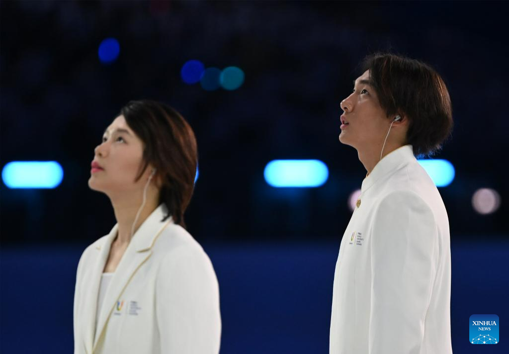 CHENGDU, July 28 (Xinhua) -- China's teenage snowboarding sensation Su Yiming, who captured the Big Air title at Beijing 2022, was a notable presence at the Chengdu Universiade opening ceremony on Friday evening, serving as one of the FISU flag bearers.