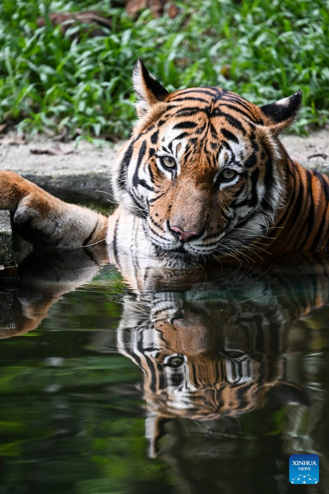 A Malayan tiger rests in a pond at Zoo Negara near Kuala Lumpur, Malaysia, July 23, 2023. The International Tiger Day is marked on July 29 every year. (Xinhua/Cheng Yiheng)