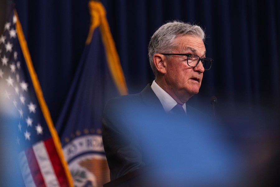 U.S. Federal Reserve Chair Jerome Powell attends a press conference in Washington, D.C., the United States, on July 26, 2023. (Photo by Aaron Schwartz/Xinhua)