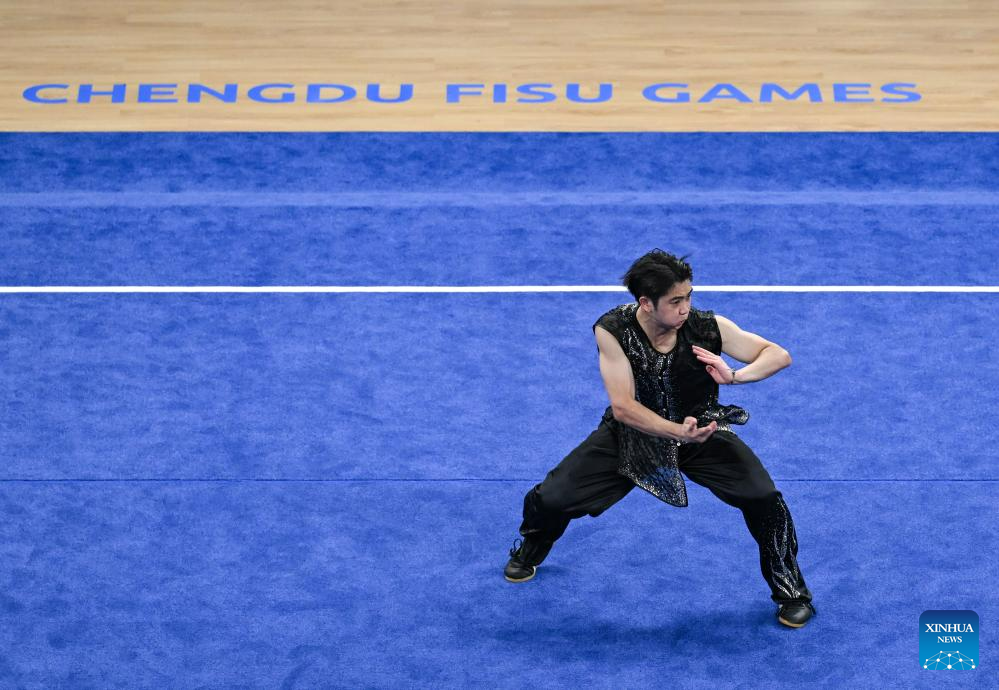 Lau Chi Lung of China's Hong Kong competes during the Wushu Men's Nanquan at the 31st FISU Summer World University Games in Chengdu, southwest China's Sichuan Province, July 29, 2023. (Xinhua/Wang Xi)