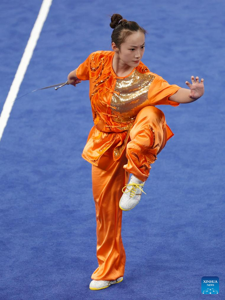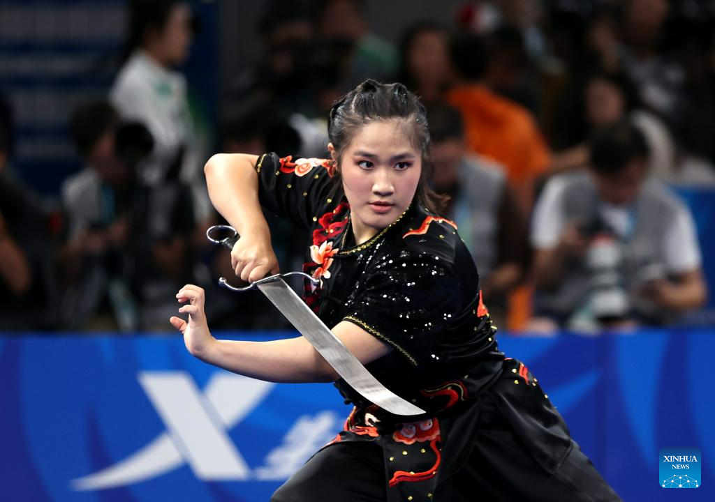 Wong Sam In of China's Macau competes during the Wushu Women's Nandao at the 31st FISU Summer World University Games in Chengdu, southwest China's Sichuan Province, July 29, 2023. (Xinhua/Jia Haocheng)