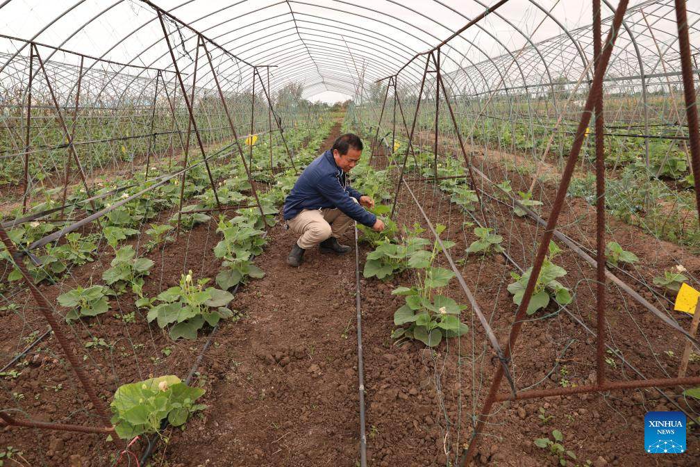 Chinese technician Dun Xinhong checks in the vegetable greenhouse at the China-Mozambique Agricultural Technology Demonstration Center in Boane district of Maputo Province, Mozambique, July 25, 2023. Built in 2010, the demonstration center is an important cooperation project between the Chinese and Mozambican governments. Apart from doing agricultural experiments, the center is also involved in the training of local farmers. (Xinhua/Dong Jianghui)
