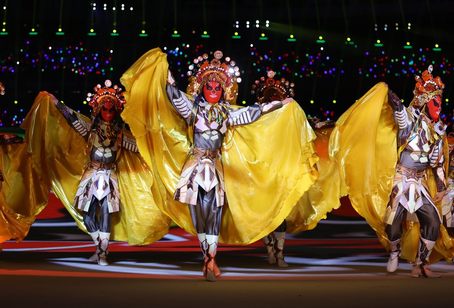 CHENGDU, July 29 (Xinhua) -- Amid thunderous applause, the face-changing performance of Sichuan Opera made its debut at the opening ceremony of the Chengdu Universiade on Friday night, putting the traditional practice to an unprecedented level with cyberpunk-style music and Chinese civilization features.