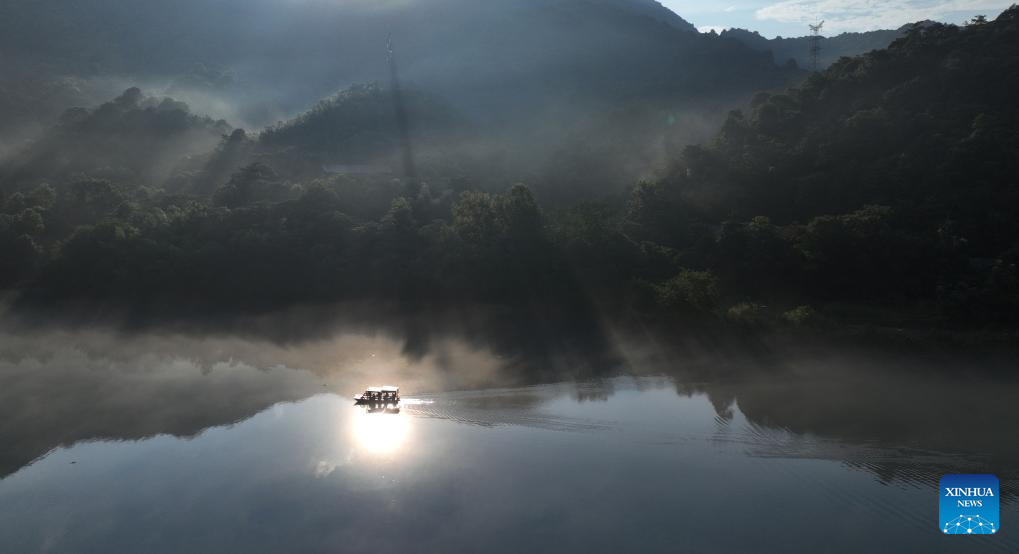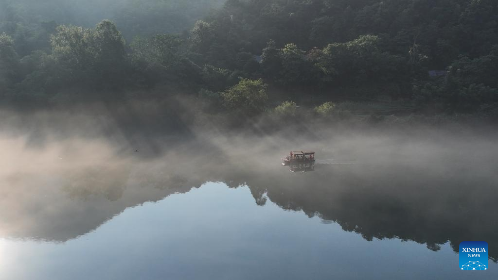 People visit the Dongjiang Lake scenic spot in Zixing City, central China's Hunan Province, July 26, 2023. (Xinhua/Zhao Zhongzhi)