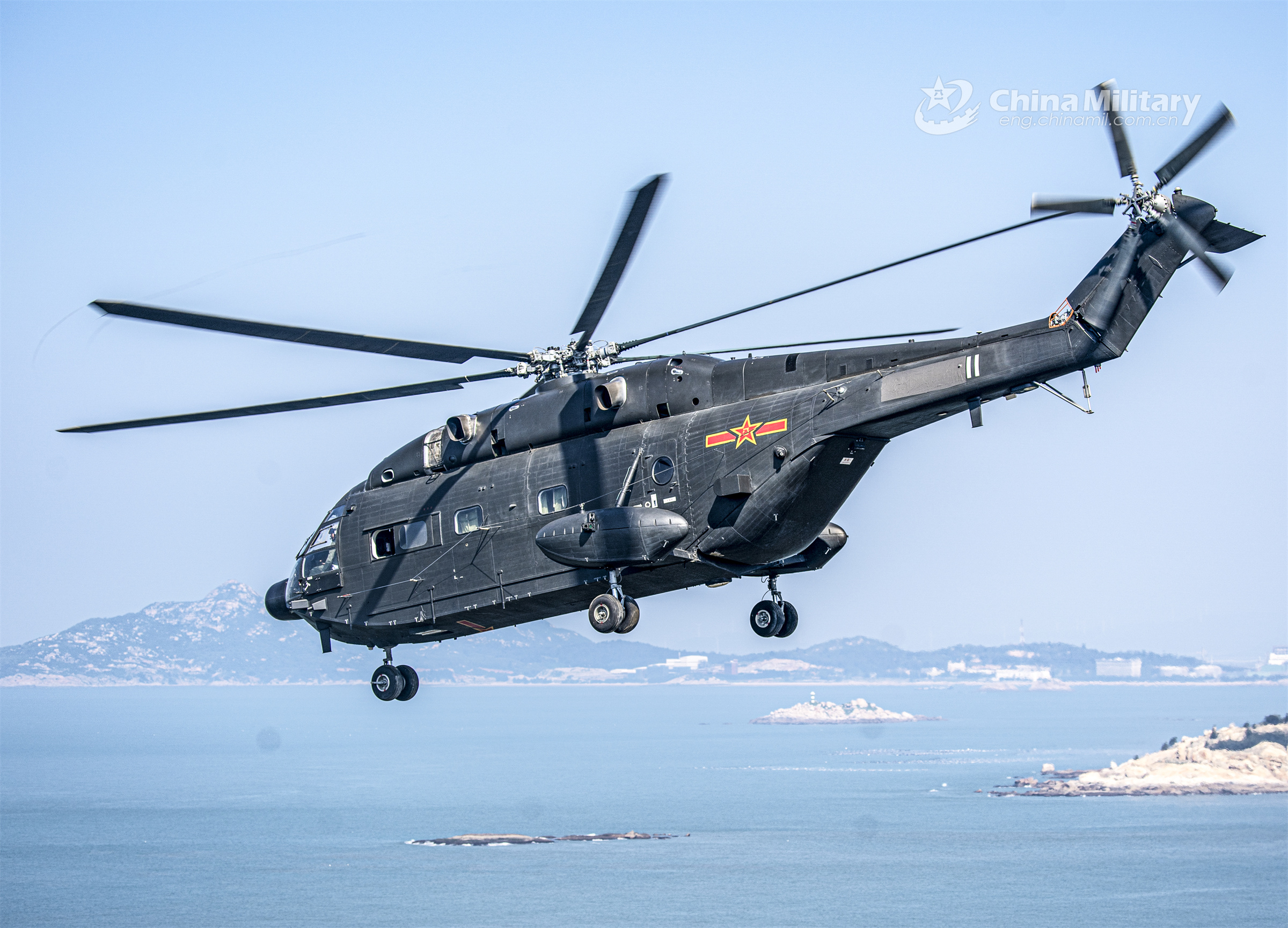 An attack helicopter attached to a brigade under the PLA 71st Group Army flies over a strait during a flight training exercise in late July, 2023. (eng.chinamil.com.cn/Photo by Xiang Xu)