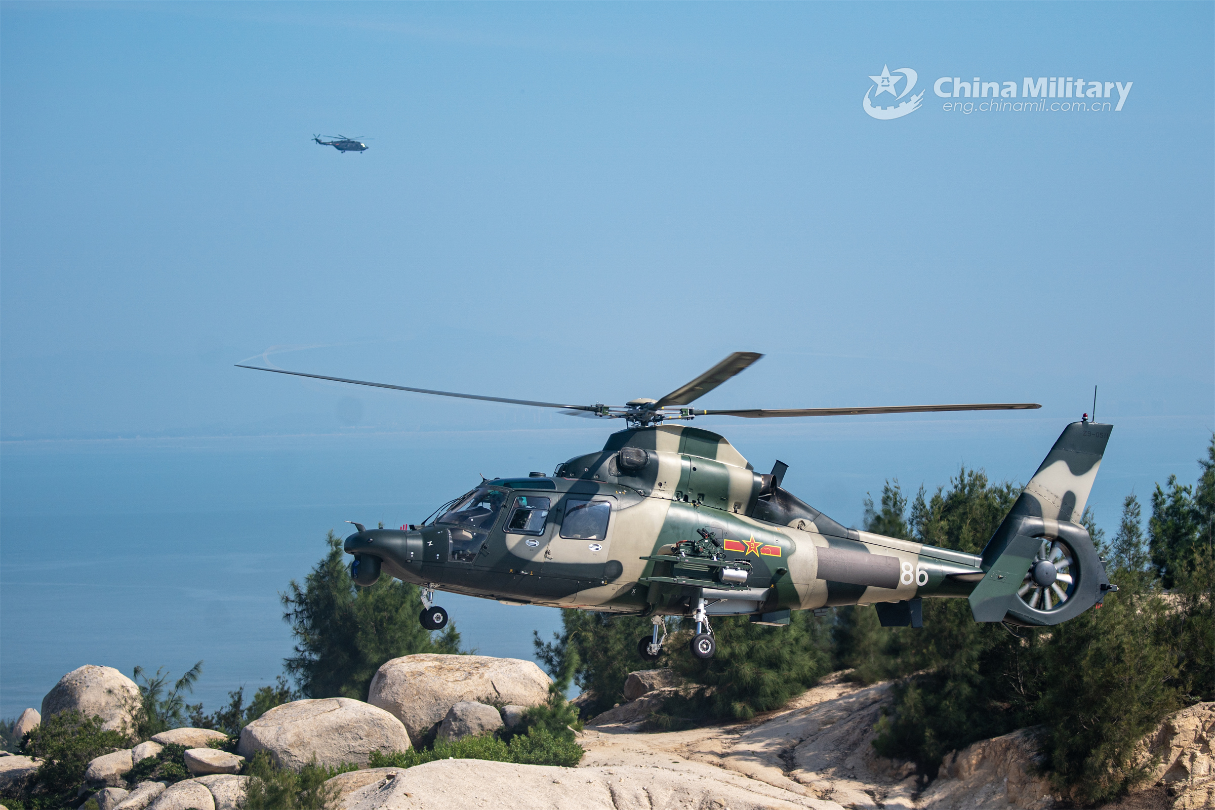 Attack helicopters attached to a brigade under the PLA 71st Group Army fly to the designated areas during a flight training exercise in late July, 2023. (eng.chinamil.com.cn/Photo by Xiang Xu)