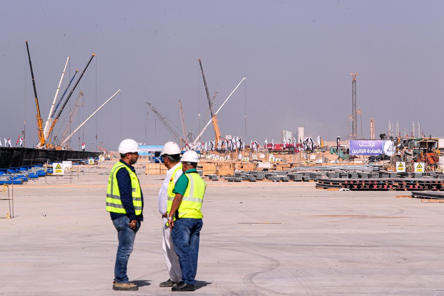A laborer works at the construction site of a new container terminal of Ain Sokhna Port in Suez Province, Egypt, July 29, 2023. (Xinhua/Ahmed Gomaa)