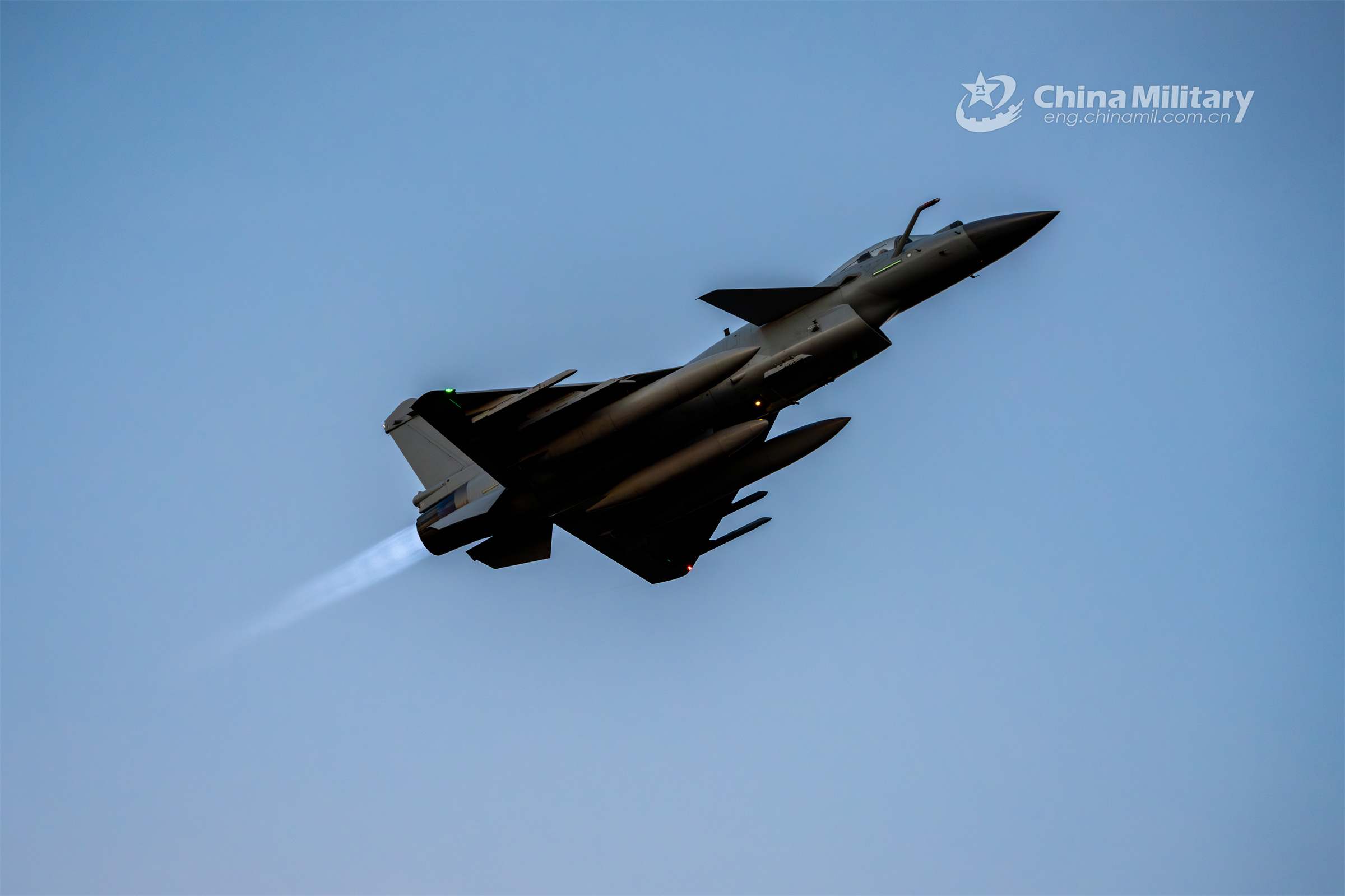 A J-10 fighter jet attached to an aviation brigade of the air force under the PLA Southern Theater Command soars into the sky during a recent flight training exercise. (eng.chinamil.com.cn/Photo by Hou Kaiwen)
