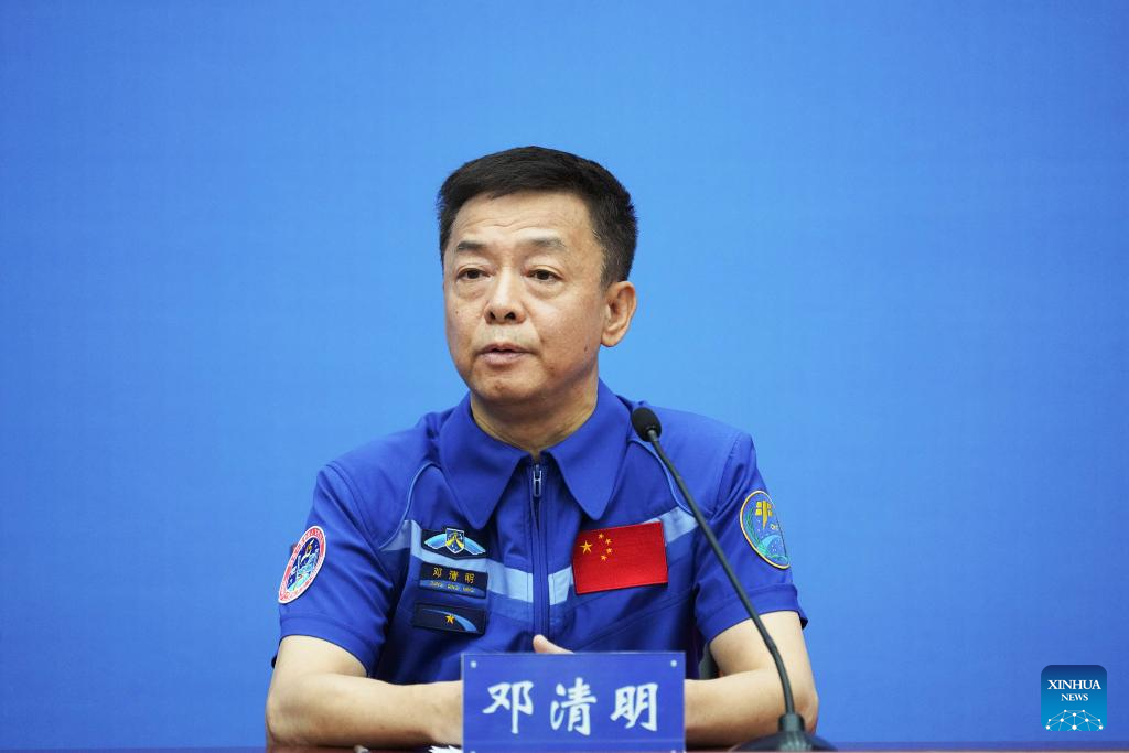 Chinese astronaut Deng Qingming speaks during a press conference in Beijing, capital of China, July 31, 2023. (Xinhua/Guo Zhongzheng)
