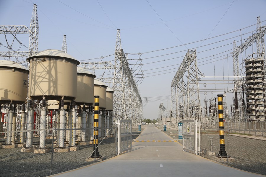 This photo taken on July 3, 2023 shows a view of the ±660kV Matiari-Lahore high-voltage direct current (HVDC) transmission project under the China-Pakistan Economic Corridor (CPEC) on the outskirts of Lahore, Pakistan. (Xinhua/Ahmad Kamal)