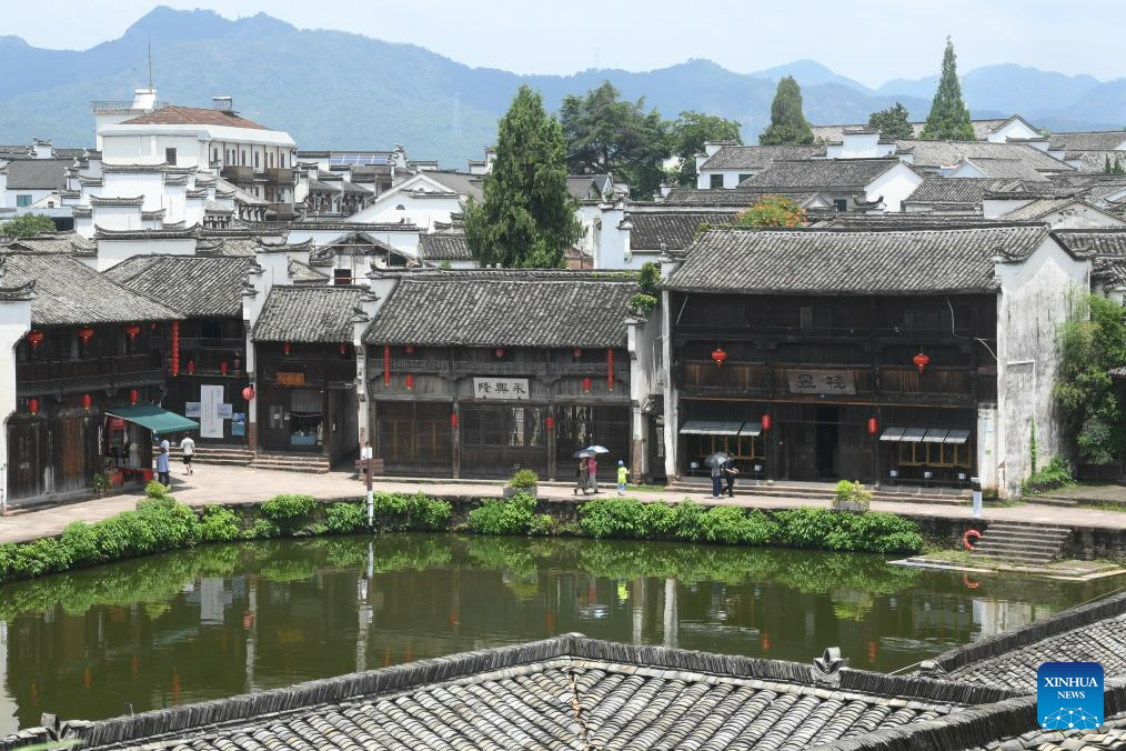 Tourists visit the Zhuge Village of Lanxi City, east China's Zhejiang Province, Aug. 1, 2023. The Zhuge Village, a historic gem with over 300 ancient buildings dating back to Ming and Qing dynasties (1368-1911), is home to descendents of Zhuge Liang, a renowned military strategist in the Three Kingdom Period (220-280). The village has made concerted efforts to preserve the ancient heritages and develop tourism, receiving over 500,000 visitors annually. (Xinhua/Weng Xinyang)