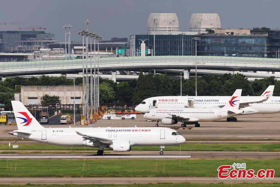 China Eastern Airlines' second C919 aircraft, China's self-developed large passenger aircraft, taxies on a runway at Shanghai Hongqiao International Airport, Aug. 2, 2023. (Photo: China News Service/Qin Liqin)