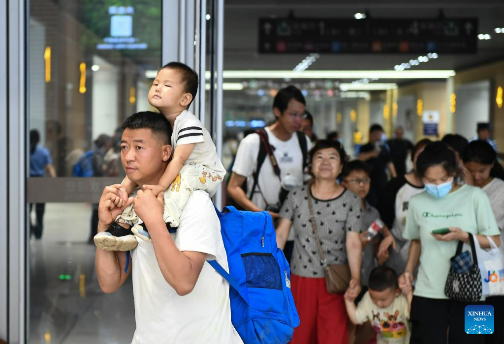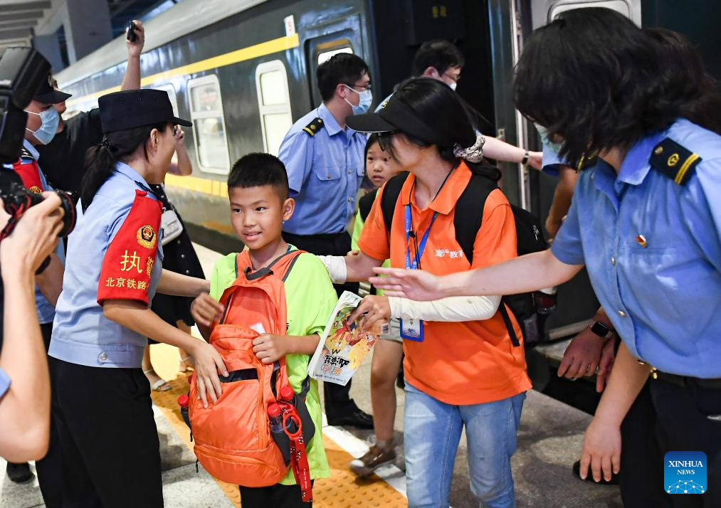 Passengers of Train K396 arrive at the Beijing Fengtai Railway Station after transfer in Beijing, capital of China, Aug. 2, 2023. Train passengers trapped in Mentougou District due to heavy rainfall have been safely transferred on Wednesday. (Xinhua/Chen Zhonghao)
