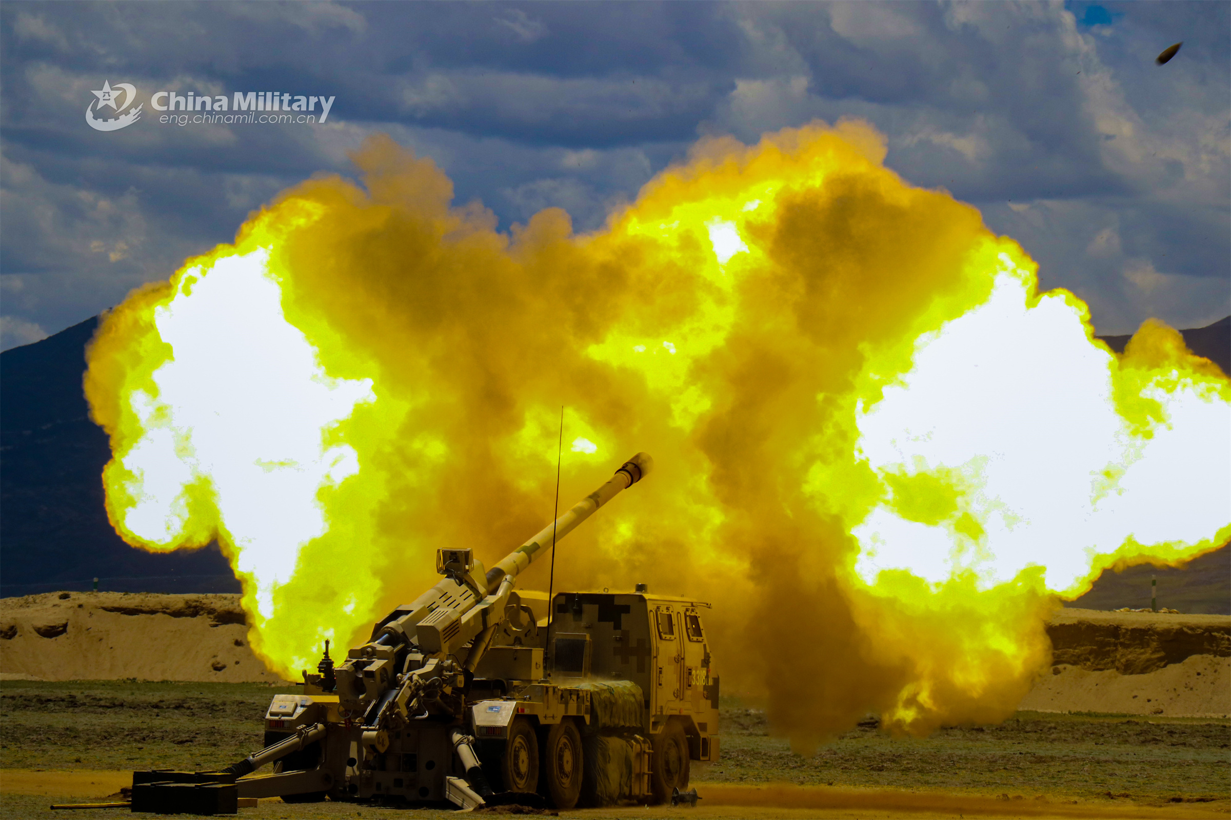 A self-propelled howitzer attached to a brigade under the PLA 77th Group Army fires at simulated targets during a recent live-fire exercise. (eng.chinamil.com.cn/Photo by Cai Congrun)