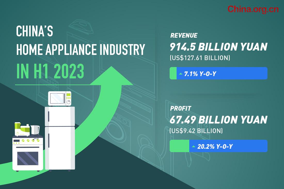 China's home appliance industry reported steady growth in the first half of this year. The industry's revenue grew 7.1% year on year to 914.5 billion yuan (US$127.61 billion), and its profit surged 20.2% to 67.49 billion yuan, said He Yaqiong, an official of the Ministry of Industry and Information Technology, at a press conference Monday.