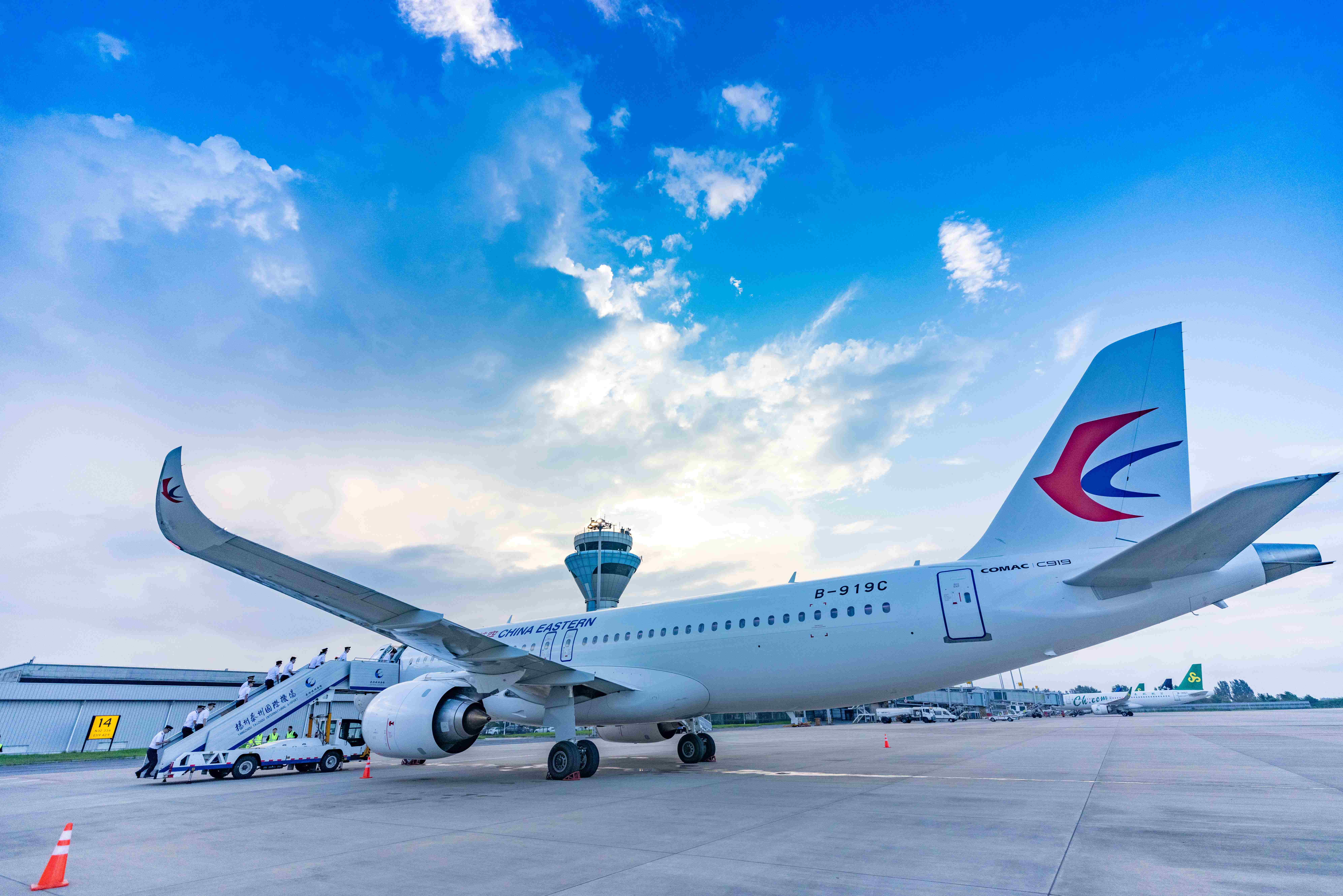 The second jet of C919, China's self-developed large passenger aircraft, arrives at the Yangzhou Taizhou International Airport, east China's Jiangsu province, July 17, 2023. (People's Daily Online/Yu Xing)
