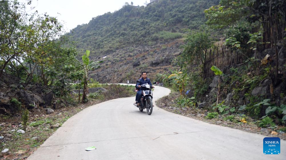 This photo taken on March 15, 2018 shows a road leading to Shangbaotun of Napo County, south China's Guangxi Zhuang Autonomous Region. Guangxi started at the end of 2008 an infrastructure project in its border area to improve the life of local people. (Xinhua/Zhang Ailin)