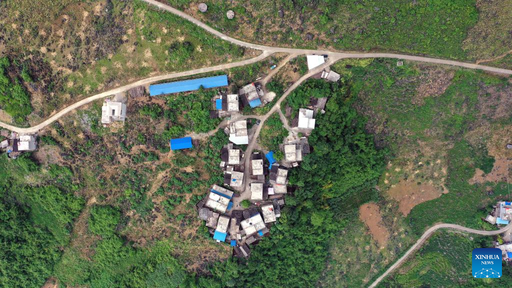 This aerial photo taken on July 30, 2023 shows renovated houses of local people in Shuinongtun of Napo County, south China's Guangxi Zhuang Autonomous Region. Guangxi started at the end of 2008 an infrastructure project in its border area to improve the life of local people. (Xinhua/Zhang Ailin)