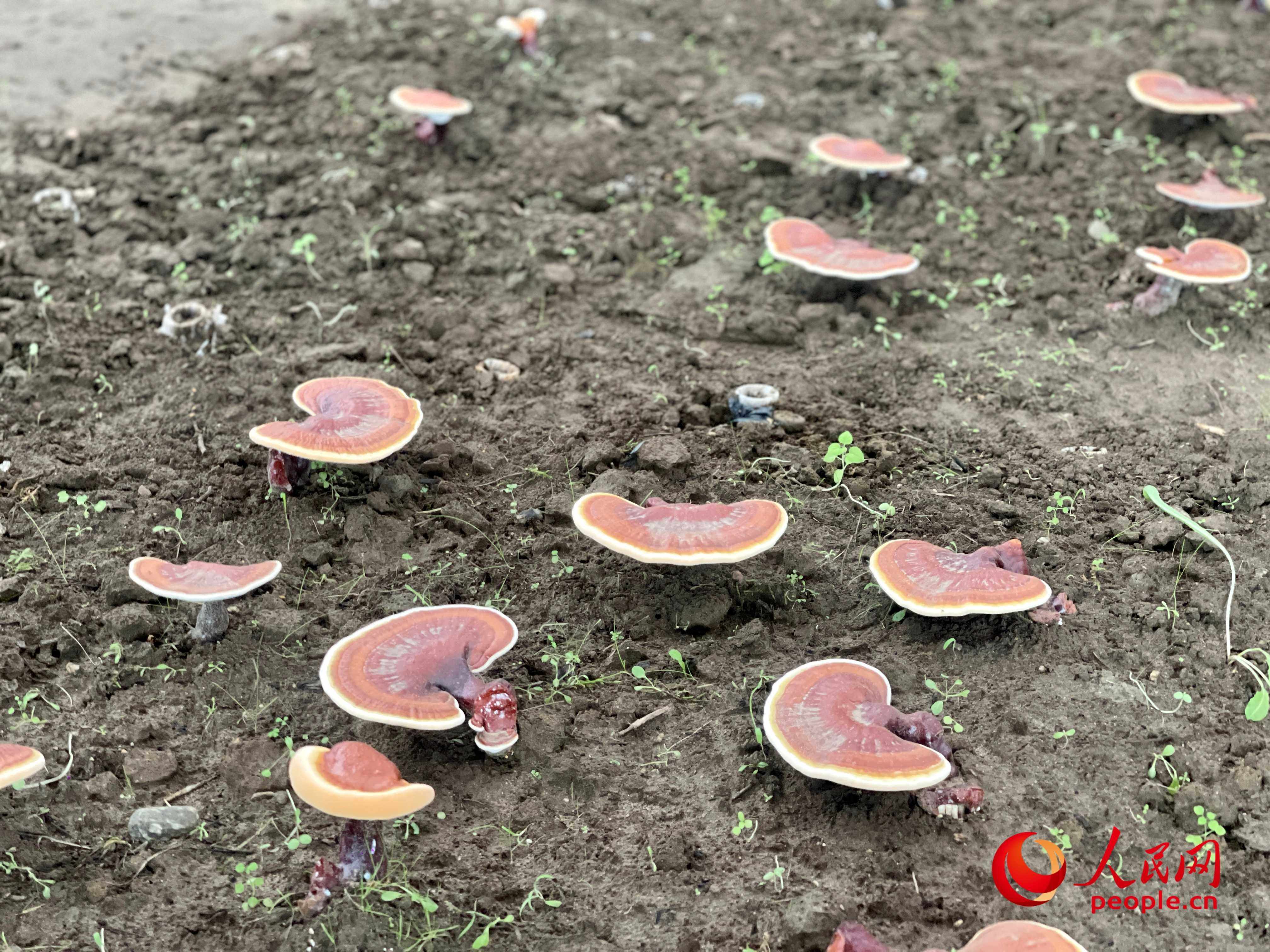 Photo shows Ganoderma leucocontextum, a new variety of fungus species endemic to the Qinghai-Tibet Plateau, in a farm greenhouse in Xueka village, Milin town, Milin county, Nyingchi, southwest China's Tibet Autonomous Region. (People's Daily Online/Zhou Jingyuan)