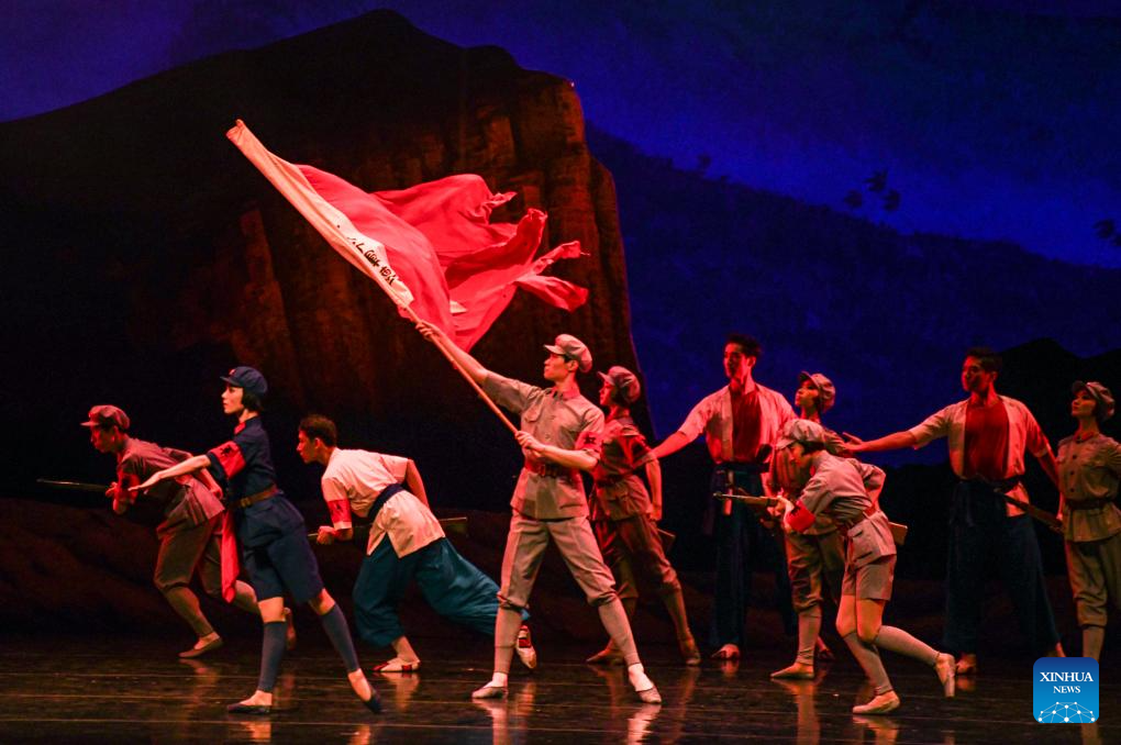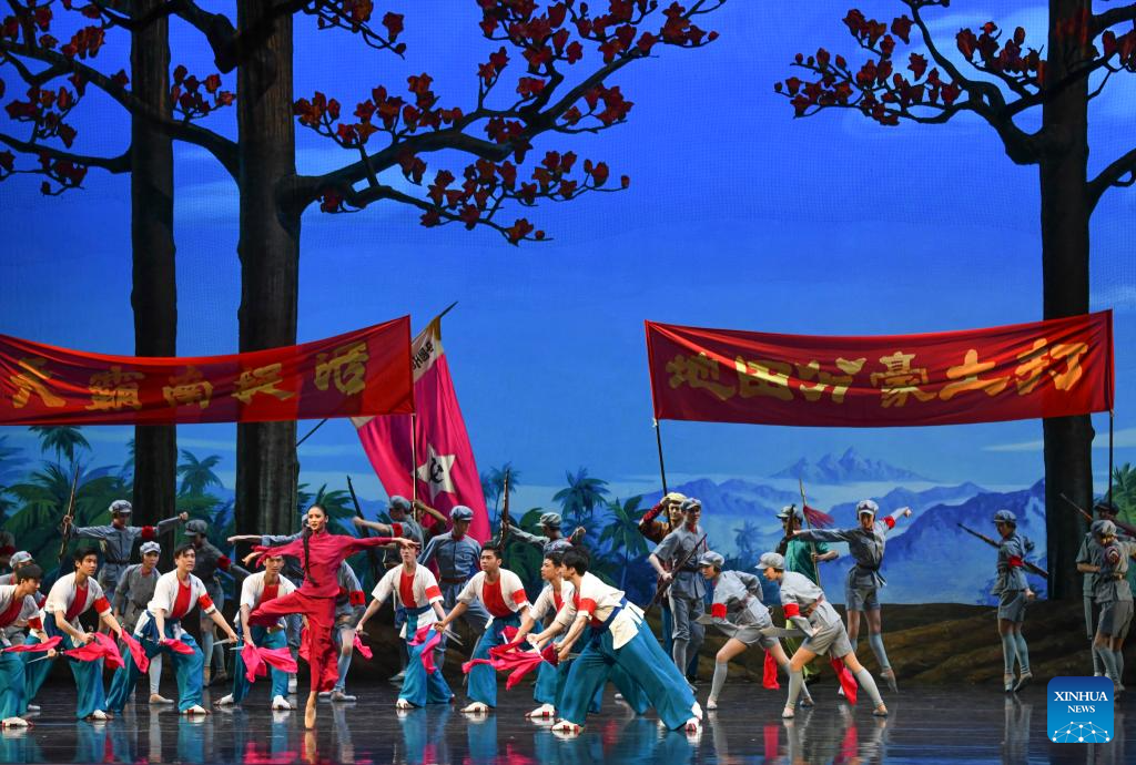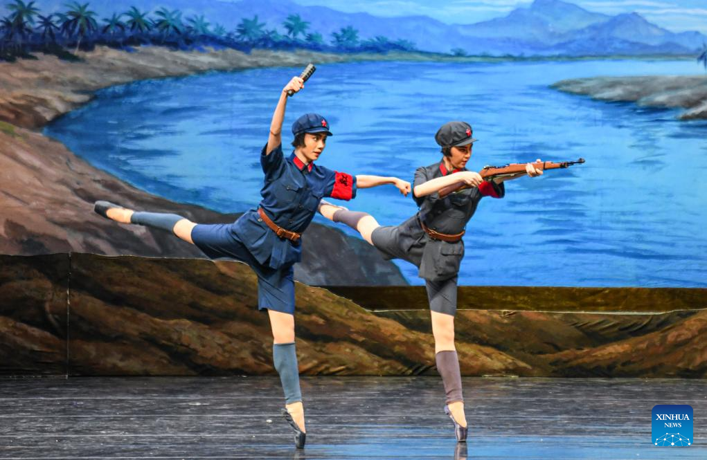 Dancers of National Ballet of China perform "The Red Detachment of Women" during the 6th China Xinjiang International Dance Festival in Urumqi, northwest China's Xinjiang Uygur Autonomous Region, Aug. 4, 2023. (Xinhua/Wang Fei)