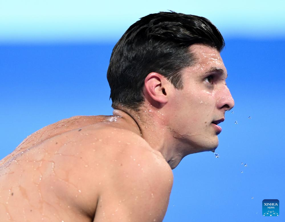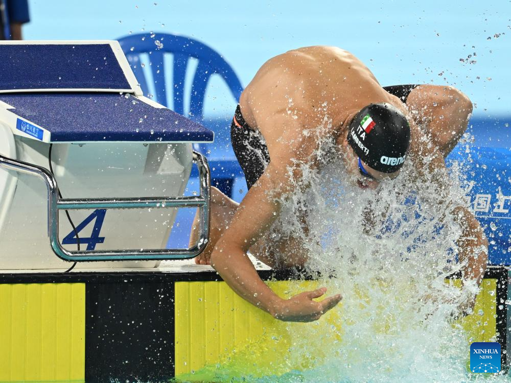 Matteo Lamberti of Italy prepares for the swimming men's 800m freestyle final at the 31st FISU Summer World University Games in Chengdu, southwest China's Sichuan Province, Aug. 5, 2023. (Xinhua/Zhang Long)
