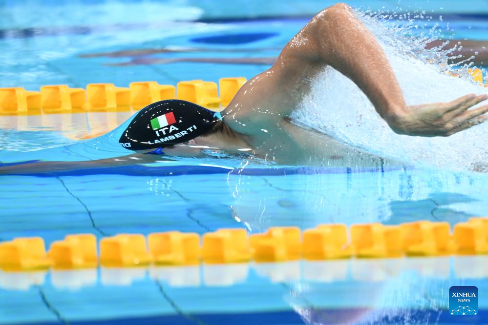 Matteo Lamberti of Italy competes during the swimming men's 800m freestyle final at the 31st FISU Summer World University Games in Chengdu, southwest China's Sichuan Province, Aug. 5, 2023. (Xinhua/Wu Gang)