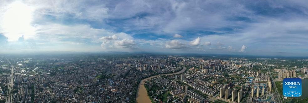 This aerial panoramic photo taken on July 22, 2023 shows a view of Qinzhou, south China's Guangxi Zhuang Autonomous Region. Qinzhou is a node of the New International Land-Sea Trade Corridor connecting Guangxi and ASEAN countries, and its location is highly beneficial, granting the city an important role in international land-sea transport connectivity. (Xinhua/Cao Yiming)