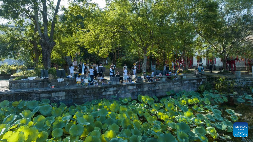 Tourists visit Xixinan Village in Huangshan City, east China's Anhui Province, Aug. 4, 2023. The ancient villages in Huangshan City witnessed a travel peak in summer. (Xinhua/Liu Junxi)