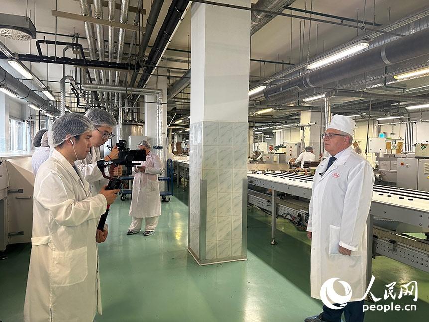 People's Daily Online journalists visit the Krasny Oktyabr confectionery factory in Moscow, Russia. (People's Daily Online/Shen Jiaping)