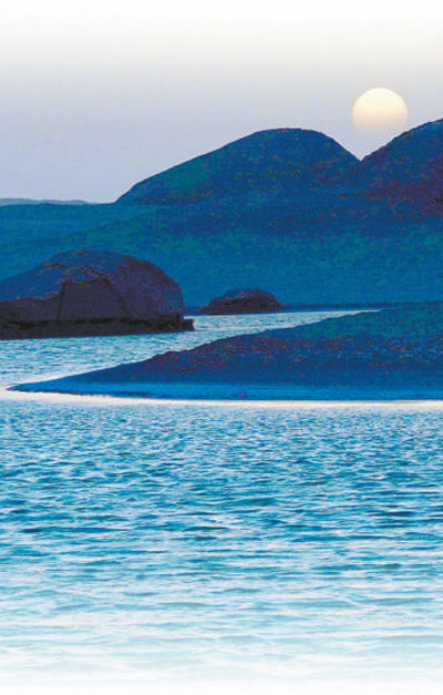 Photo shows a lake at the "Mars campsite" in Lenghu town, Mangya city, Haixi Mongolian and Tibetan Autonomous Prefecture in northwest China's Qinghai Province. (People's Visual/Cao Chunlin)