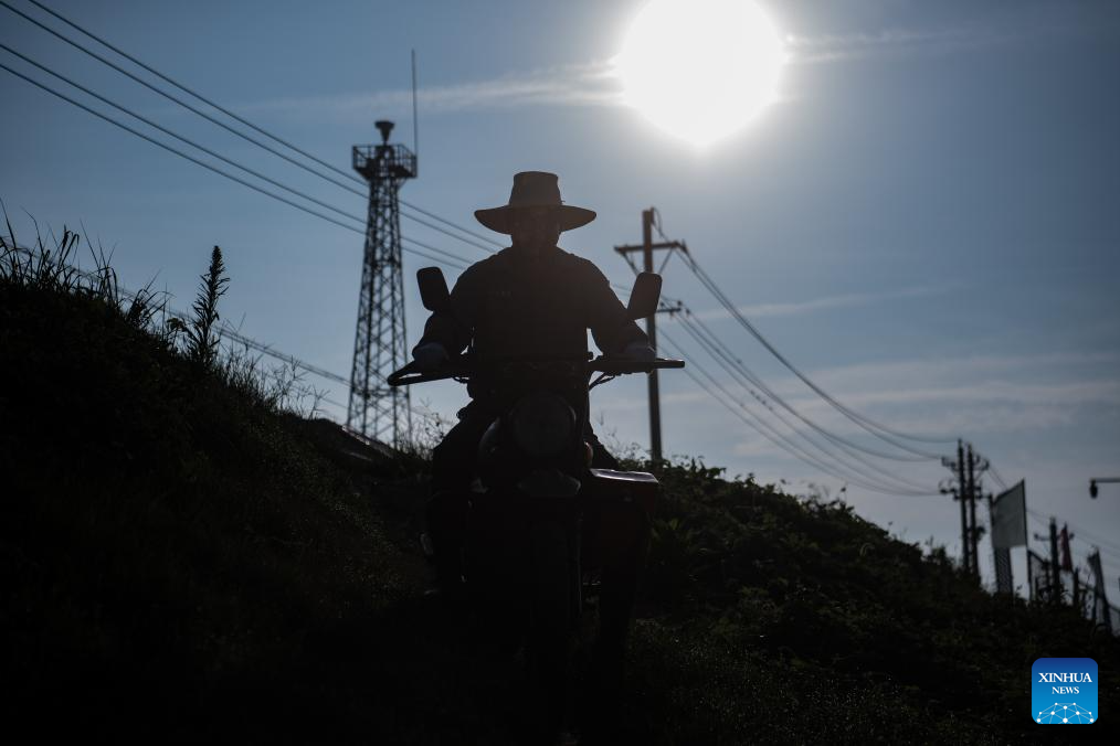 Ranger Wang Chuanjun fixes a humanly broken fence at Shishou Milu Deer National Nature Reserve in central China's Hubei Province, Aug. 1, 2023. (Xinhua/Wu Zhizun)