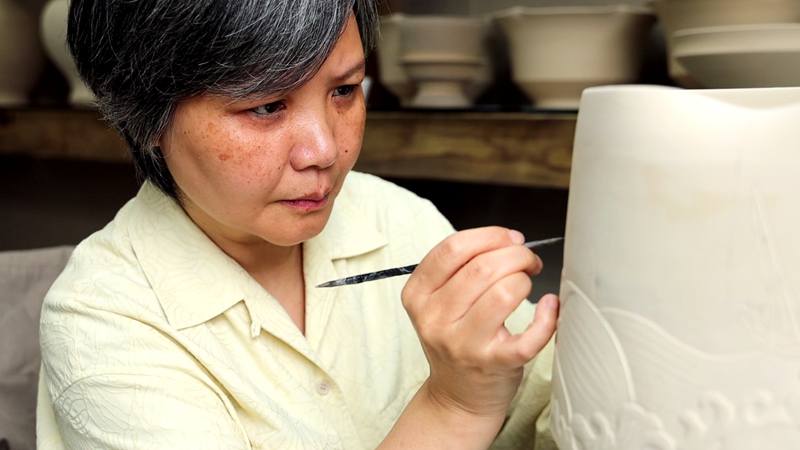 Shi Zhen works on a piece of ceramic work. (Photo courtesy of the interviewee)
