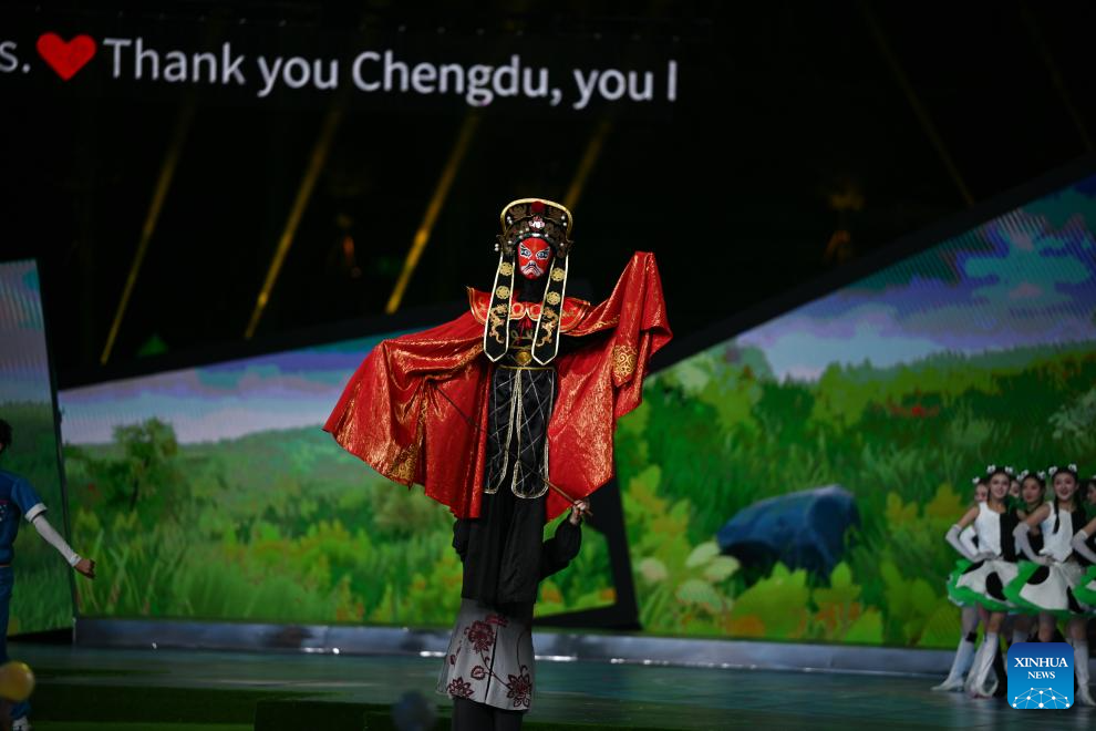 A performance is held during the closing ceremony of the 31st FISU Summer World University Games in Chengdu, southwest China's Sichuan Province, Aug. 8, 2023. (Xinhua/Zhang Long)