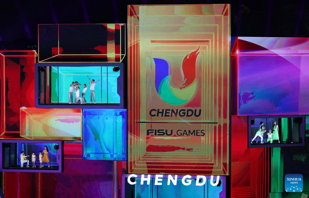 A performance is held during the closing ceremony of the 31st FISU Summer World University Games in Chengdu, southwest China's Sichuan Province, Aug. 8, 2023. (Xinhua/Wang Xi)