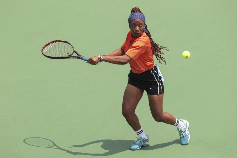 Queen Sakala competes in a tennis match at the Chengdu Universiade. (Handout via Xinhua)