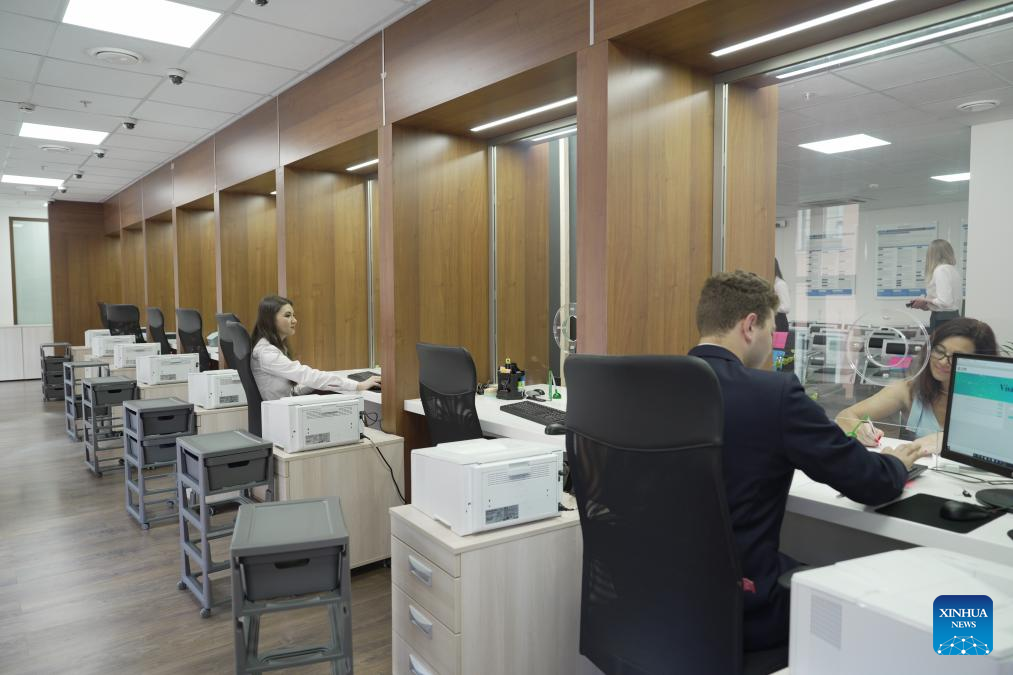Employees work at the Chinese Visa Application Service Center in St. Petersburg, Russia, on Aug. 8, 2023. The Chinese Visa Application Service Center in St. Petersburg, Russia's second largest city, officially opened on Tuesday, aiming to facilitate the applications for Chinese visas. (Xinhua/An Xiaomeng)