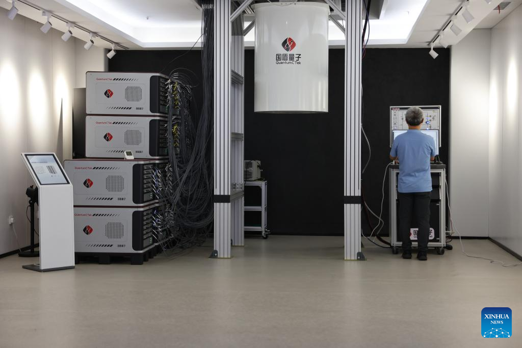 Peng Chengzhi operates Zuchongzhi 2, a 66-qubit programmable quantum computing system, at QuantumCTek Co., Ltd in Hefei, east China's Anhui Province, July 21, 2023. (Xinhua/Jin Liwang)