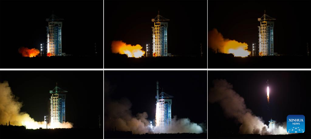 This combined photo shows China launching the world's first quantum satellite on top of a Long March-2D rocket from the Jiuquan Satellite Launch Center in Jiuquan, northwest China's Gansu Province, Aug. 16, 2016.?(Xinhua/Jin Liwang)