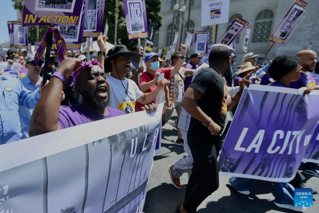 LOS ANGELES, Aug. 8 (Xinhua) -- More than 11,000 city workers in Los Angeles, the second largest city in the United States, are walking off their job on Tuesday for a 24-hour strike.