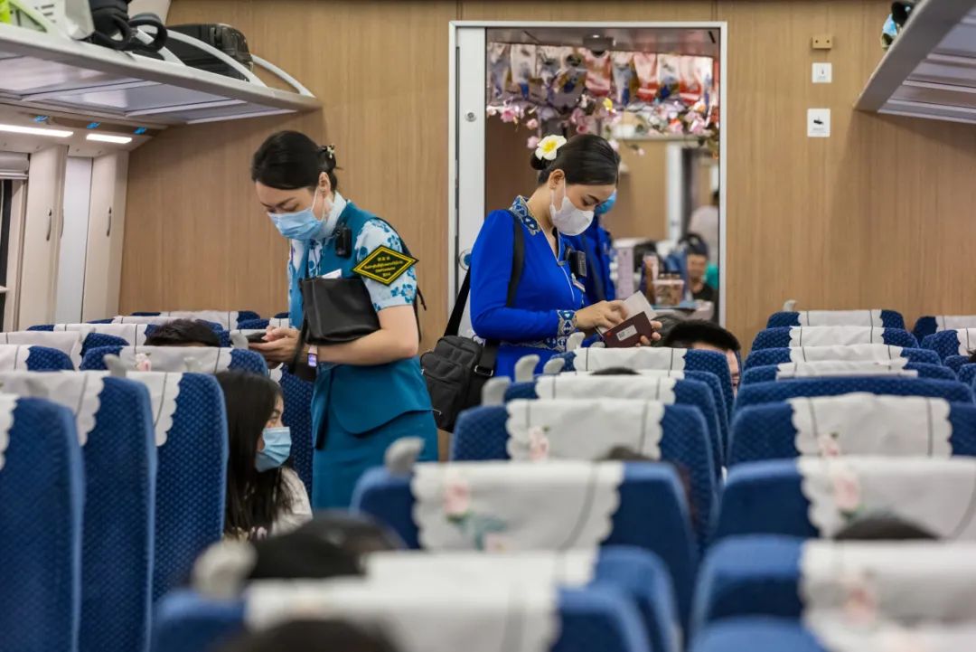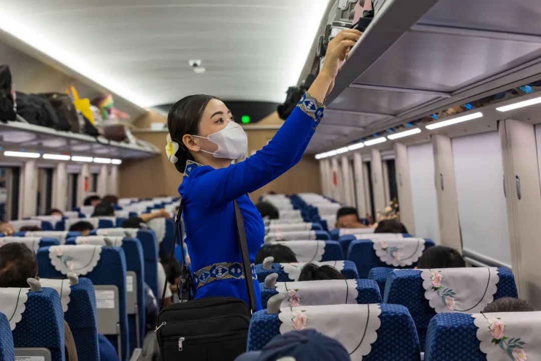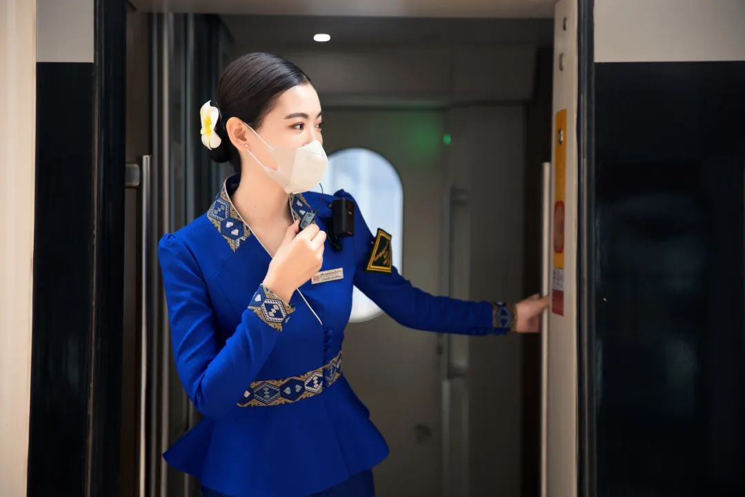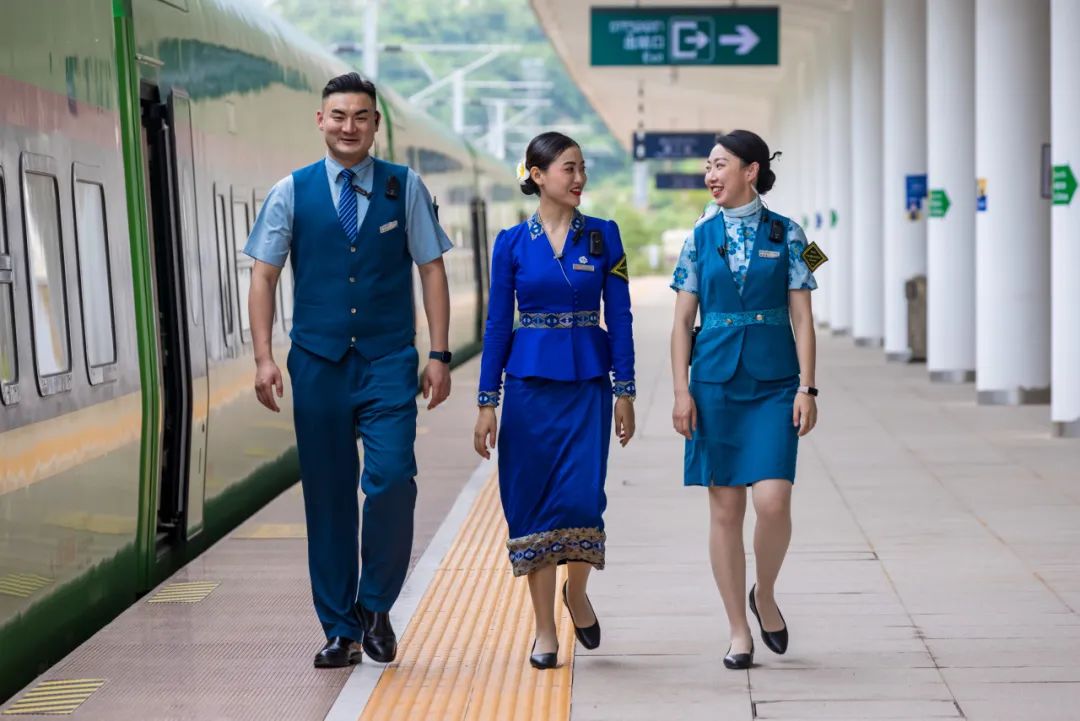 When a Fuxing bullet train running on the China-Laos Railway enters Boten, Laos, passengers find that besides two Chinese chief conductors, a Lao chief conductor is assigned to the train. For Lao passengers, the Lao chief conductor plays an important role.