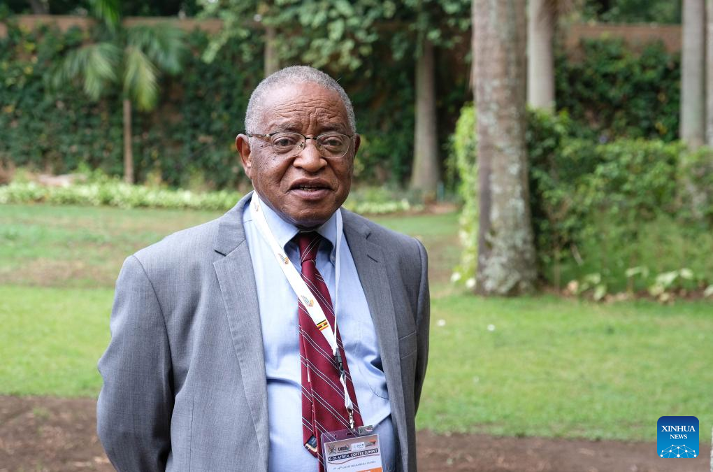 Ezra Suruma, Uganda's former finance minister and an economist, speaks to Xinhua on the sidelines of the 2nd G-25 Heads of State Africa Coffee Summit in Kampala, Uganda on Aug. 7, 2023. (Photo by Hajarah Nalwadda/Xinhua)