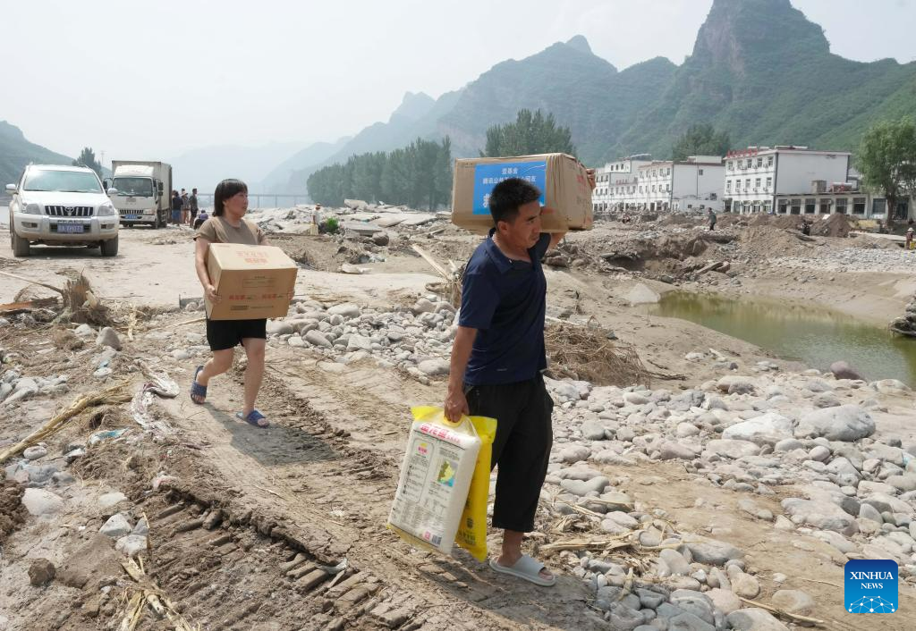 Relief supplies delivered to flood-affected residents in Laishui, N China