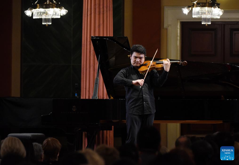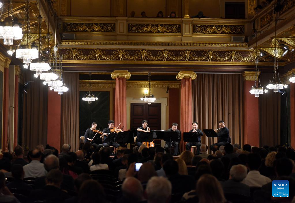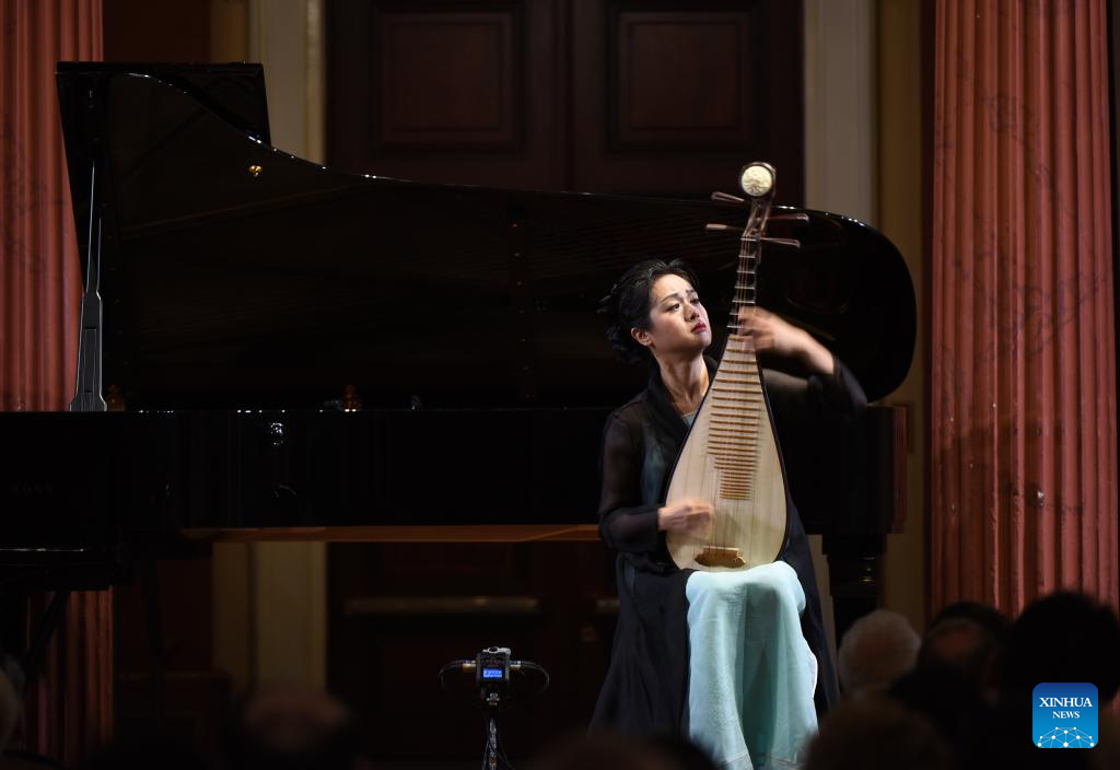 A concert given by Chinese musicians is staged in Vienna, Austria, on Aug. 10, 2023. (Xinhua/He Canling)