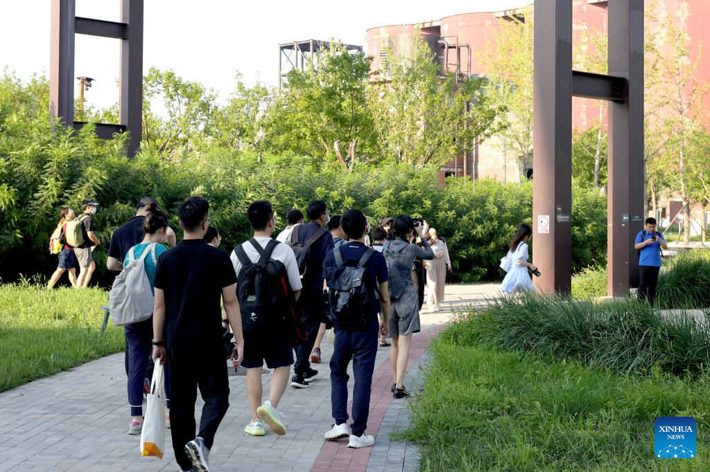 Journalists attend a media preview of the 2023 China International Fair for Trade in Services (CIFTIS) at Shougang Park in Beijing, capital of China, Aug. 13, 2023. The 2023 CIFTIS will be held at the China National Convention Center and Shougang Park in Beijing from Sept. 2 to Sept. 6. (Xinhua/Sun Weitong)