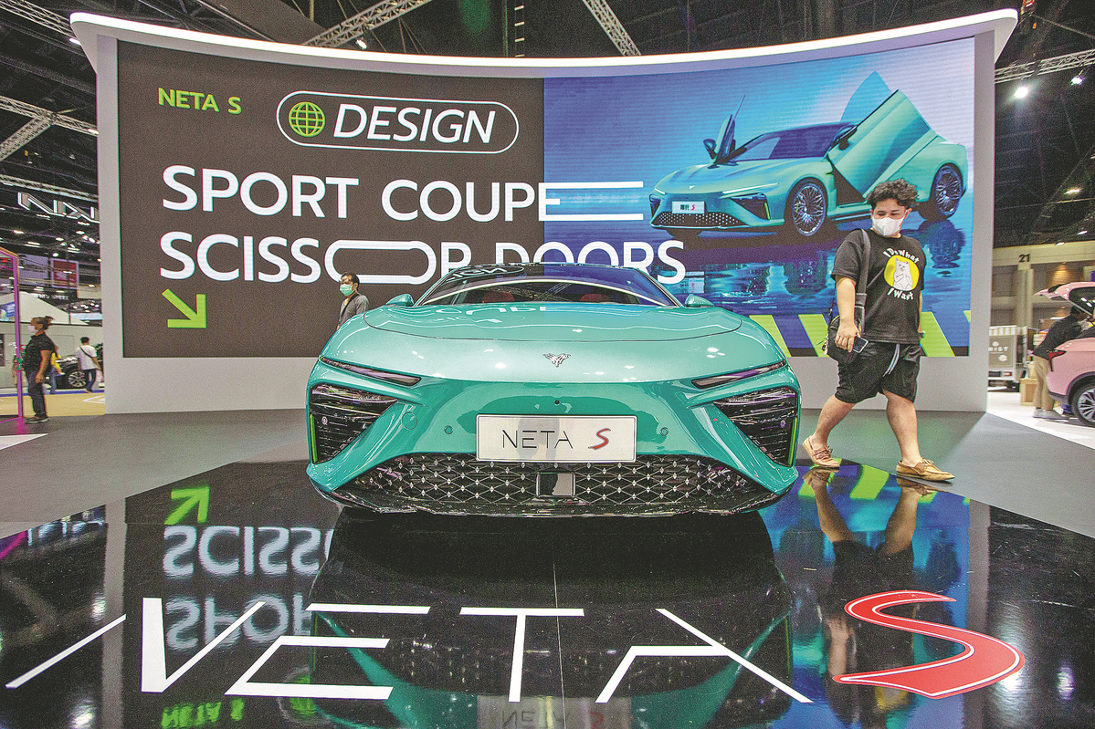 A Neta S coupe on display at the 44th Bangkok International Motor Show in Bangkok, Thailand, in March. [Photo/Xinhua]