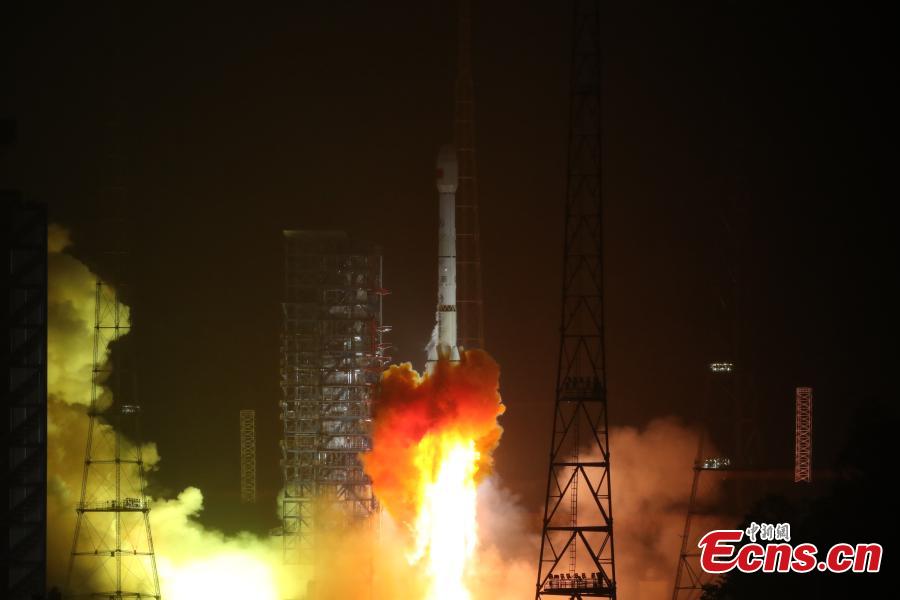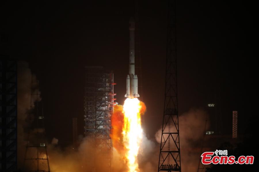 A Long March-3B carrier rocket carrying the Land Exploration-4 01 satellite, the world's first synthetic aperture radar satellite, blasts off from the Xichang Satellite Launch Center in southwest China's Sichuan Province, Aug. 13, 2023. (Photo: China News Service/Zhang Yingjian)