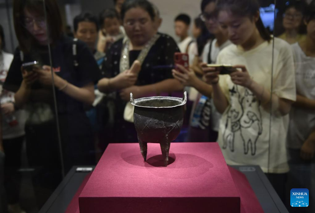 This photo taken on Aug. 12, 2023 shows an exhibit at Erlitou Site Museum of the Xia Capital in Luoyang, central China's Henan Province. Museums in Henan Province have witnessed a large amount of visitors since the beginning of summer vacation this year. (Xinhua/Lu Peng)